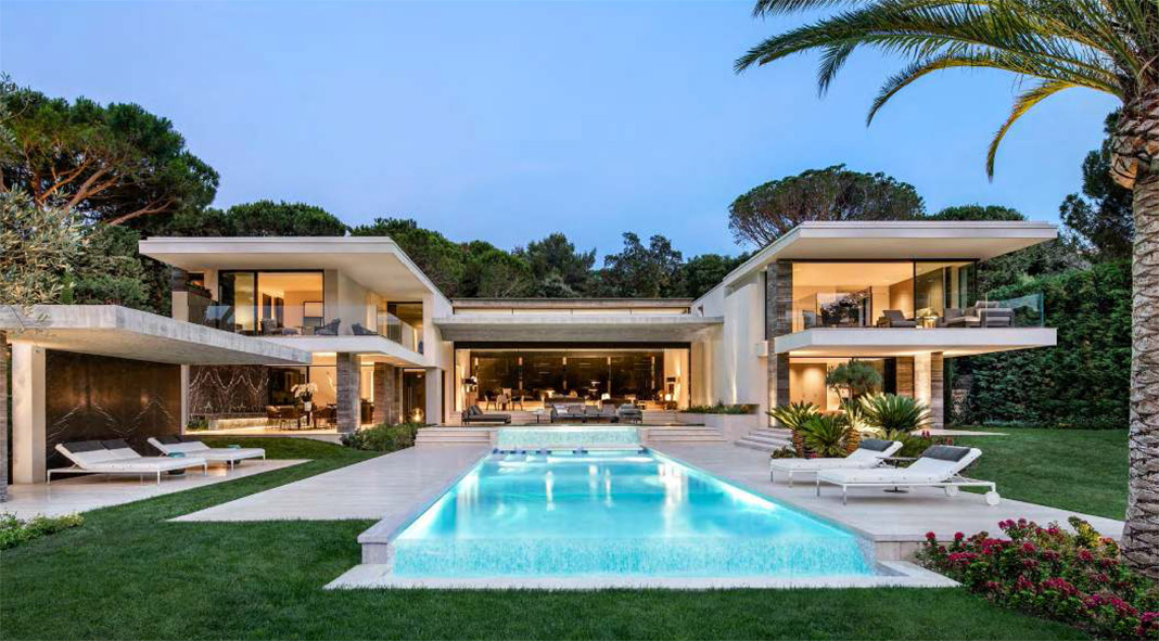 Le Pine, a luxurious family home in Saint Tropez, France with a dramatically folded floating roof.