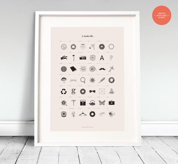 Graphic designer and art director Ashwin Patel designed this creative poster with lots of illustrations representing the typical life of a design studio in a figurative sense. The poster is printed on high-quality GF Smith Colourplan Vellum white 135gsm.