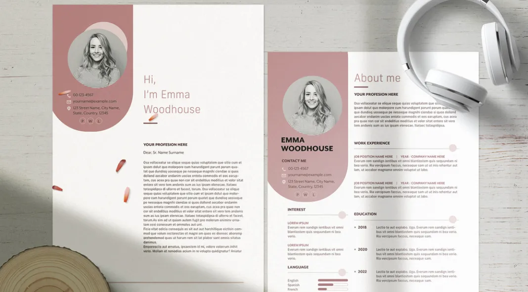 This template’s dominant use of muted tones, particularly the warm mauve and off-white backdrop, creates a soft yet professional ambiance. The harmonious color palette strikes a balance between professionalism and approachability, with the muted shades promoting visual comfort while ensuring the readability of content. The left-aligned photograph of the candidate breaks away from conventional symmetrical formats, lending a unique and modern flair to the design. This asymmetry, coupled with subtle circular elements, enhances visual interest without overwhelming the viewer.
