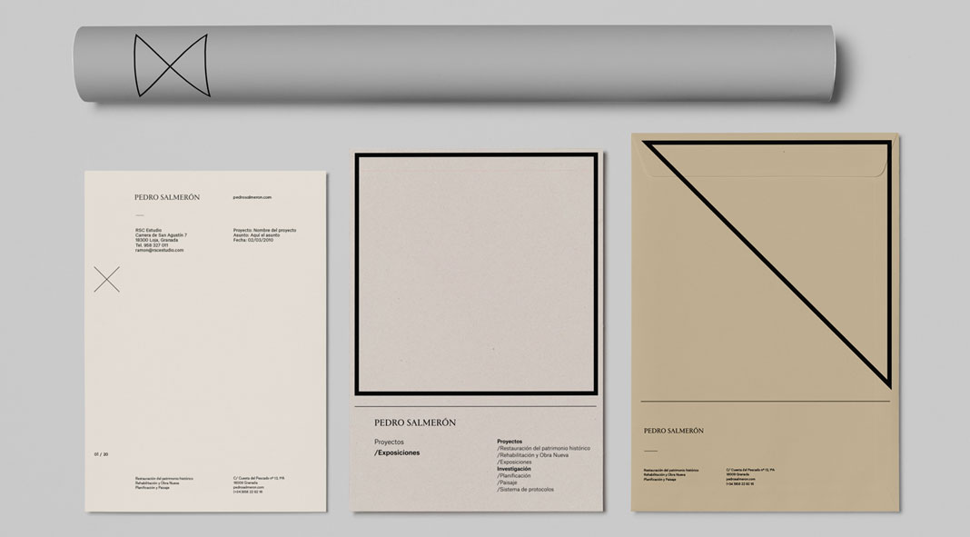 Pedro Salmerón is an architect specializing in historical heritage. Buenaventura, a Granada, Spain based graphic design studio was commissioned to develop a new brand experience for his architecture practice. Pedro Salmerón asked for a corporate identity that’s able to accommodate the several aspects of his work. By reducing the design to its essentials, Buenaventura’s creative team came up with a brand experience that fully visualizes the architect’s leading and relevant position. They have created a uniform yet flexible visual system which is elegant and graphically relevant at the same time. The corporate identity is based on several layers and a very clean visual language, which pulls the new design away from traditional representations.