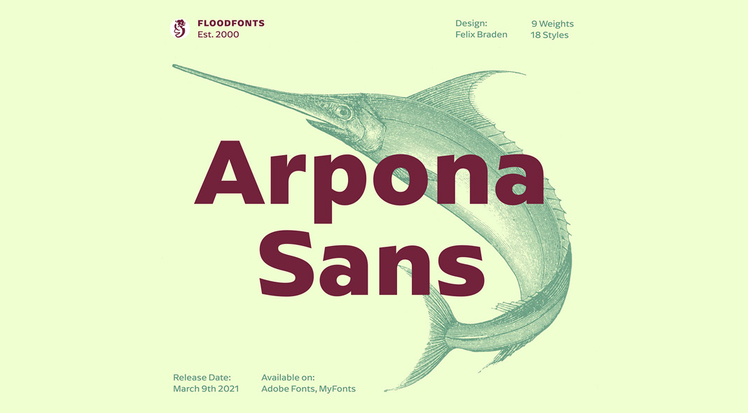 German graphic and typeface designer Felix Braden just released his latest font family, Arpona Sans—the sans-serif companion of the popular Arpona typeface. Arpona Sans draws inspiration from the creative work of Edward Johnston and Eric Gill for London Underground. The font family masterfully combines the modern esthetics and proportions of geometric sans fonts with the friendly feel of humanist typefaces.