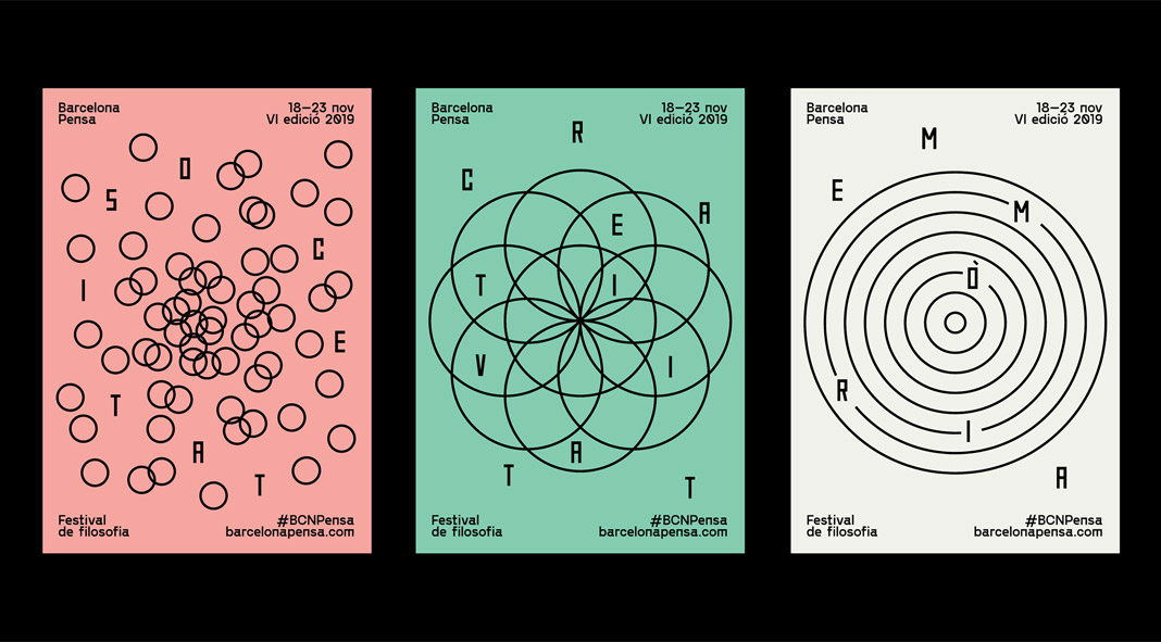 Studio Carreras has created a visual identity and poster series based on minimalist geometric shapes and symbolism for philosophy festival, Barcelona Pensa 2019.