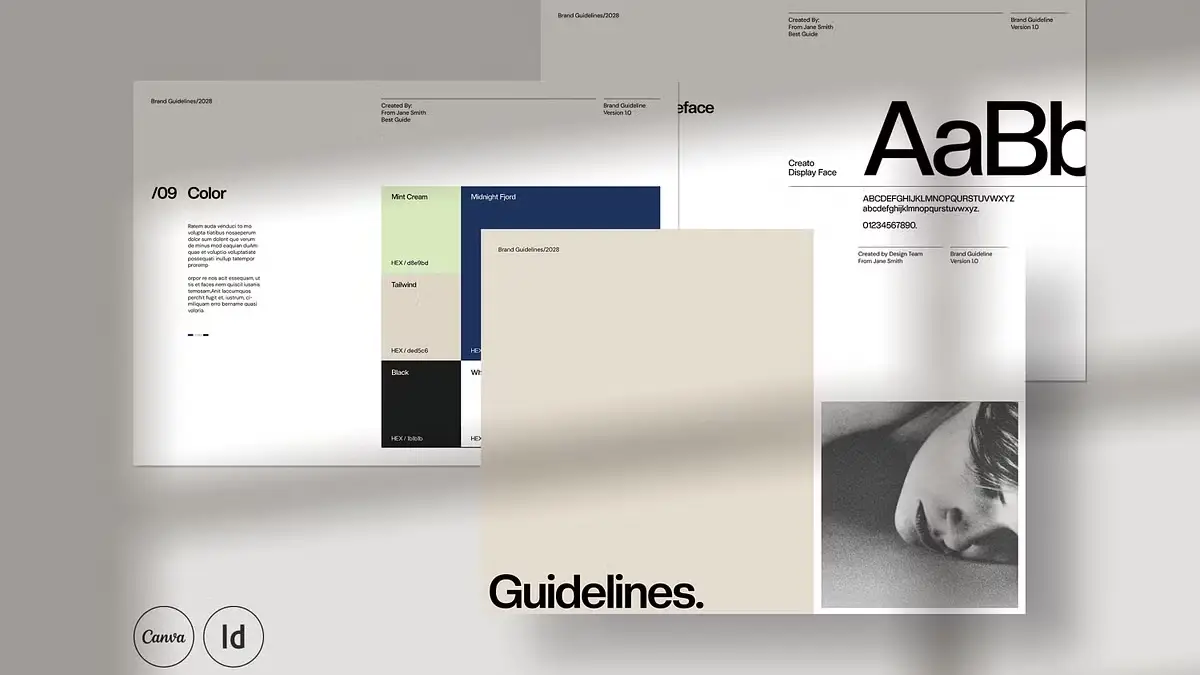This is where a hybrid brand guidelines template changes the game. The “Hugs” layout by Evgeny Studio acknowledges a new reality. The brand is born in Adobe InDesign, but it lives in Canva. By offering a synchronized system, you solve the agency’s biggest headache. You maintain quality while granting access. You build the structure in InDesign to satisfy your perfectionism. Subsequently, you hand over the Canva version to satisfy the client’s speed.