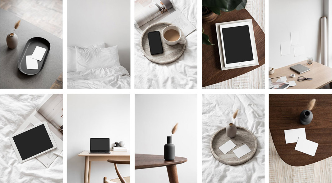 Made by the creative team of Moyo Studio, Bruton is an amazing collection of minimalist stock photos created with the design-conscious creative in mind. Inspired by the aesthetics of mid-century interiors, this mockup collection features a variety of home offices as well as desk and work scenes. All images offer a soft neutral color palette to complement your graphic design projects perfectly. The collection features high-quality goods such as organic ceramics, crisp white linens, marble home accessories as well as numerous devices such as iPhones, iMacs, iPads, and Laptops.