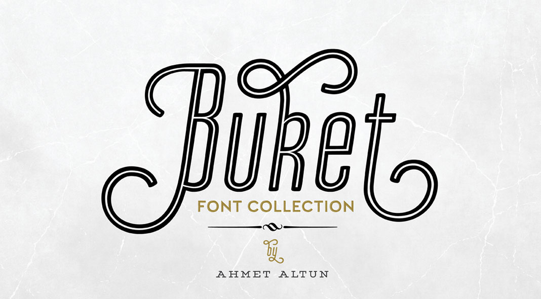 Izmir, Turkey based type designer Ahmet Altun has recently published the diverse Buket font collection. The family comprises 18 different styles plus lots of decorative ornaments. Mainly designed for display use, the diverse Buket fonts are well suited for plenty of applications such as poster designs, invitations, greeting cards, web projects, and much more. Please note, the complete family is currently available as “super saver” introductory offer on Fontspring (only for a very limited time). For additional information on all features and styles, please follow the link below.