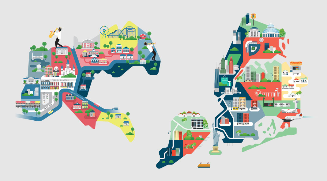Jing Zhang has created a playful series of map illustrations based on US American cities she has visited.