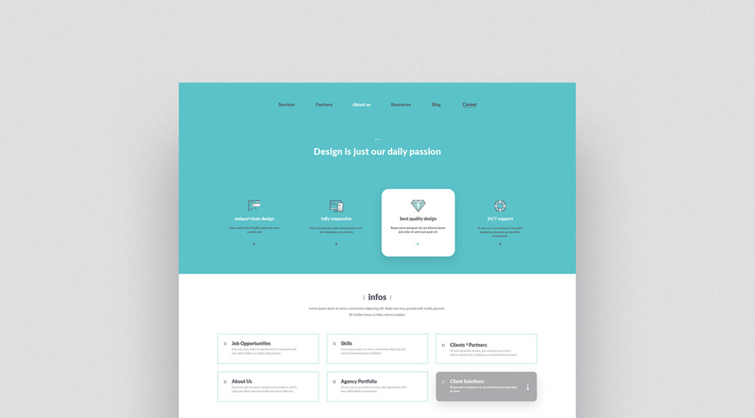 Available for download as a fully-editable Adobe Illustrator file, this company portfolio website template offers a modern and restrained look.