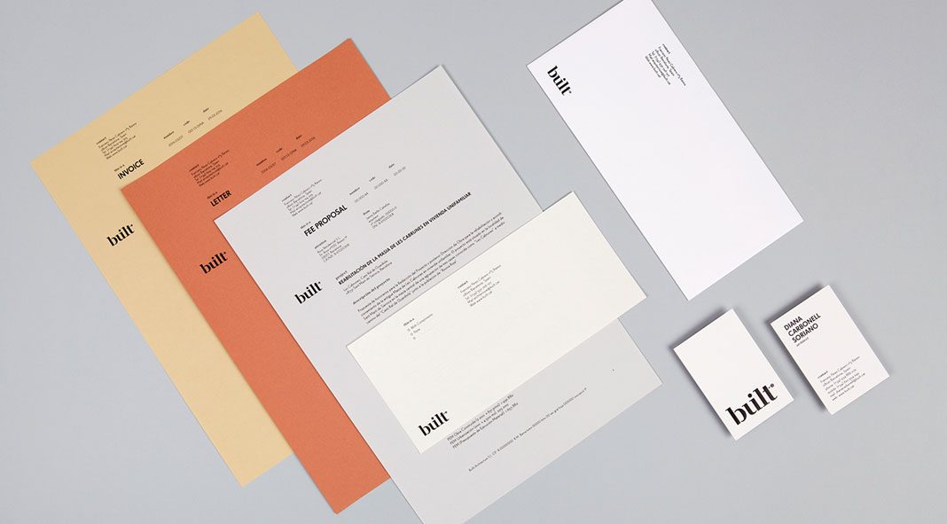 A clean, professional, and highly aesthetic corporate identity realized by Mayra Monobe for Barcelona based architecture studio built.