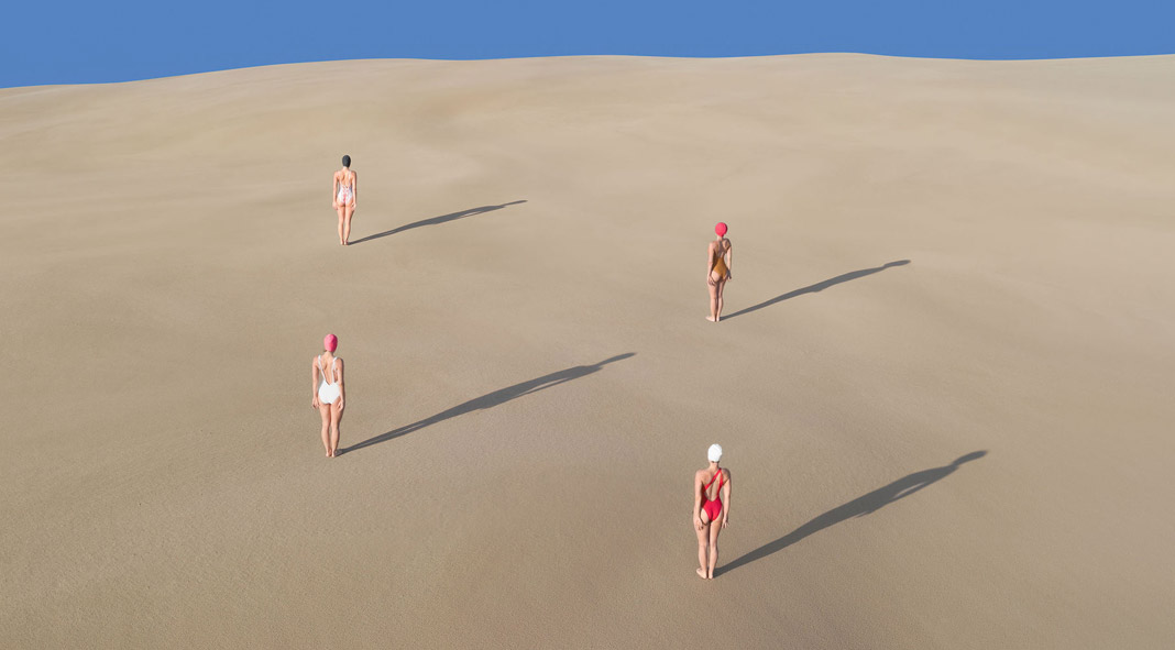 Walls also draws inspiration from 40s fashion photographer Clifford Coffin’s ‘Models Sitting on Sand Dunes’. Walls himself is deeply inspired by coffins, who likewise like himself pushes the boundaries of traditional photography. The artist displays a melancholic sense of loneliness in his series, and balances these emotions with warmer hues, similarly found in Coffins’ work as Walls states “We all belong to something that separates us. It’s a sort of melancholic irony”.