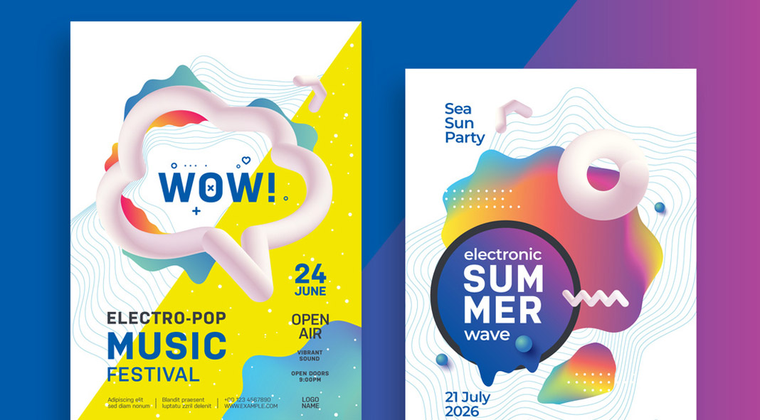 Check out these outstanding poster templates created by Denys Koltovskyi for electro-pop music festivals and other events.