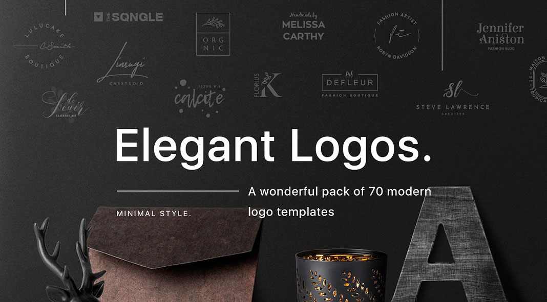 70 elegant logos for eye-catching identity solutions. Only free fonts have been used. Thanks to the use of vector graphics, the logo templates are fully editable!