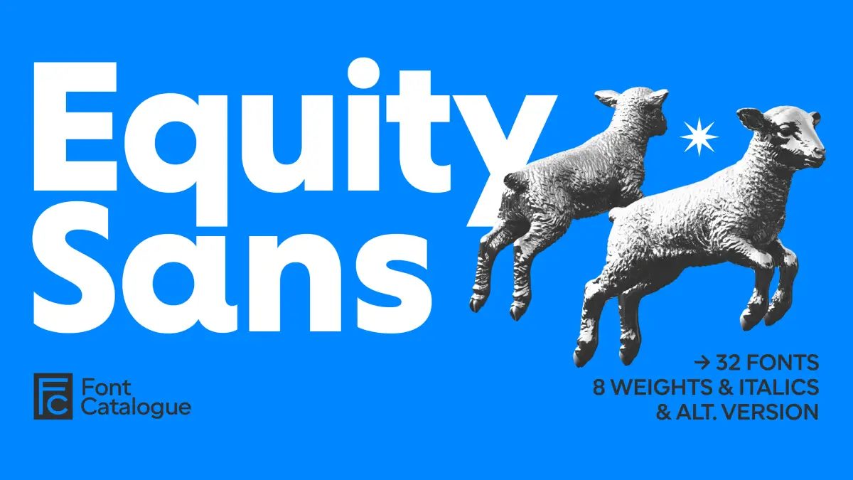 The Equity Sans font family is a geometric sans-serif typeface by Font Catalogue. It is built on pure circular forms, features rounded terminals, open counters, and generous letter spacing. It includes eight weights and eight italic cuts, making it a comprehensive type system for brand and editorial design.