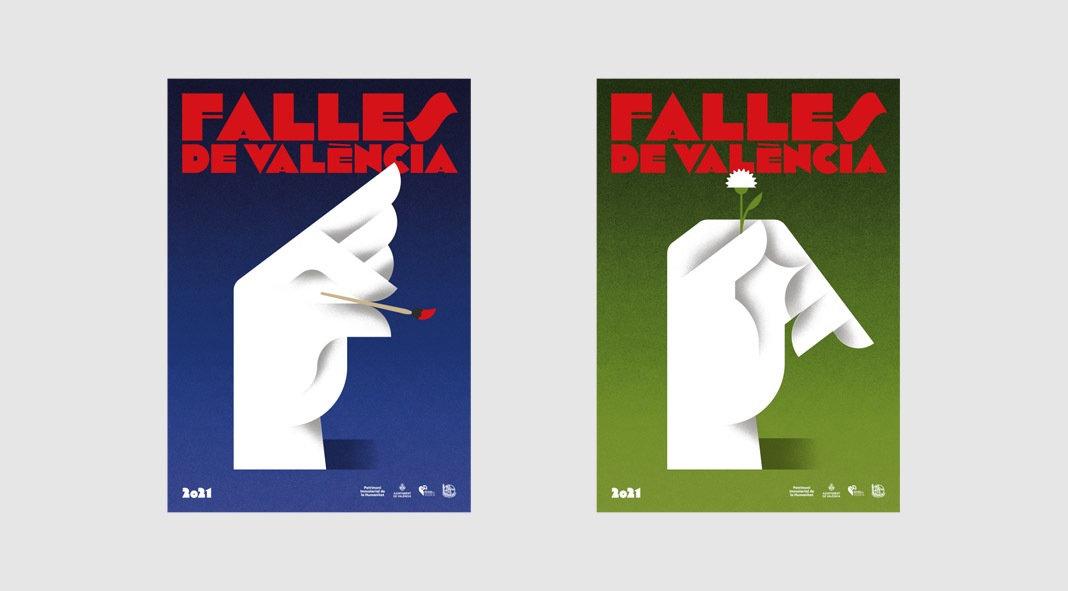 Spanish design studio Fase teamed up with illustrator and graphic designer Diego Mir to work on a graphic identity for Fallas 2021, the most important celebration in València, Spain. The design concept is a tribute to the professionals that make the festival possible. In addition, it acts as a recognition and a vindication of tradition, motivated by the situation that these artisans are going through.