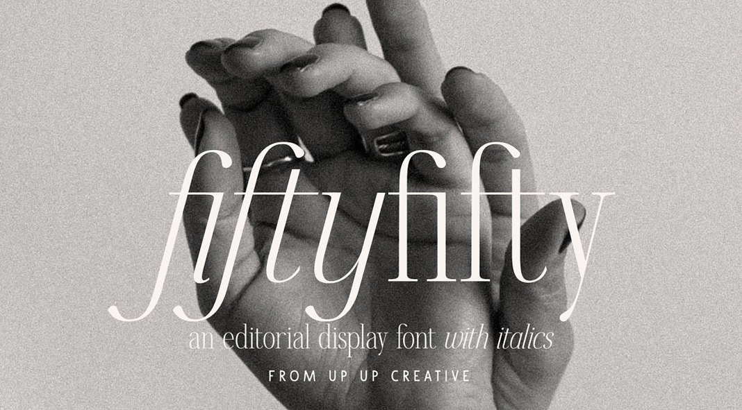 Discover Fifty Fifty, an elegant display serif font from foundry Up Up Creative.