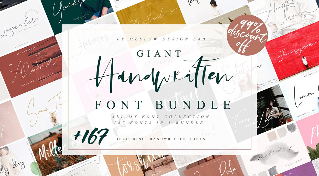 If you are looking for a great handwriting font for your next design project, you will definitely find something suitable in this huge bundle from Mellow Design Lab. For the first time ever, they have put together all the fonts they’ve made in one big bundle. In other words, you can get 167 fonts for a super low price of only $19, which is a discount of 99%. Please note, this offer is available only for a very limited time.