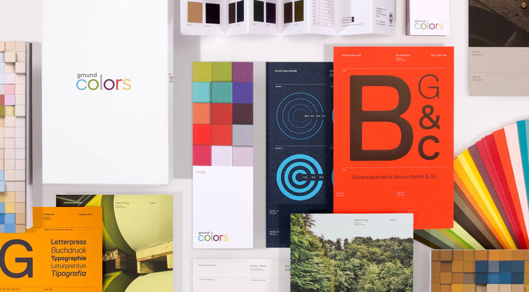 Because of my passion for colors and outstanding graphic design, it’s my pleasure to feature this beautiful work on WE AND THE COLOR. When creative director Steve Tolleson teamed up with studio Principal to collaborate on Gmund’s product plans, it marked the beginning of a two-year partnership “to define the perfect color palette within a single paper collection.” With 48 colors offered in four surface options, the Gmund Colors palette ensures that any color combination works together seamlessly. Four hero portraits were created to present the four surface finishes. A vivid mix of swatchbook inserts demonstrate the various possibilities of print techniques.