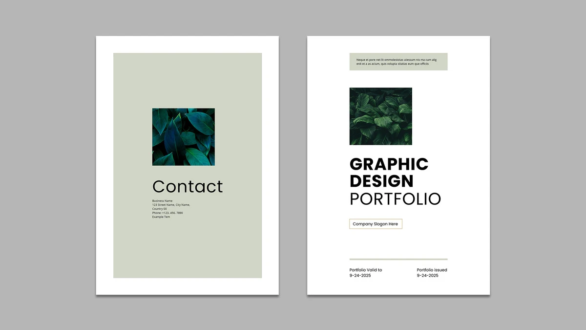 Customizing this graphic design portfolio brochure template is intuitive. You simply drag and drop your high-resolution images into the existing frames. The text is editable with a click. You can change the fonts to match your personal brand typeface. If the sage green accents don’t fit your style, you can swap them for a bold red or a stark black in seconds using the Swatches panel.