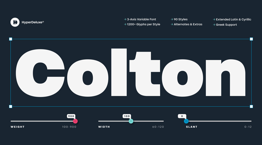 HyperDeluxe studio created this iconic typeface with five widths ranging from compressed to extra-wide. Its nine weights are accompanied by true italics. The HD Colton font family is equipped with 1200+ glyphs per style. Furthermore, the family supports 200+ languages including extended Latin, extended Cyrillic, and basic Greek. But that’s not all! Also included are five stylistic sets, two arrow sets, and numerous OpenType features. Just click on the following link to learn more about this outstanding super-family.