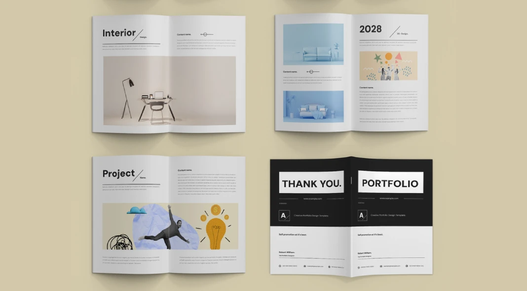 - Interior and Other Design Works: Customizable pages for projects that go beyond digital work, such as interior design or other creative ventures.