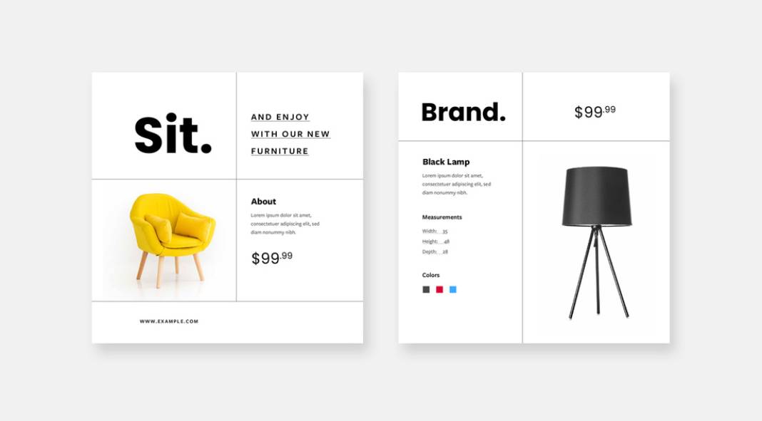 Download these pre-designed and fully customizable social media post templates to showcase your products on Instagram and other channels in a professional style.