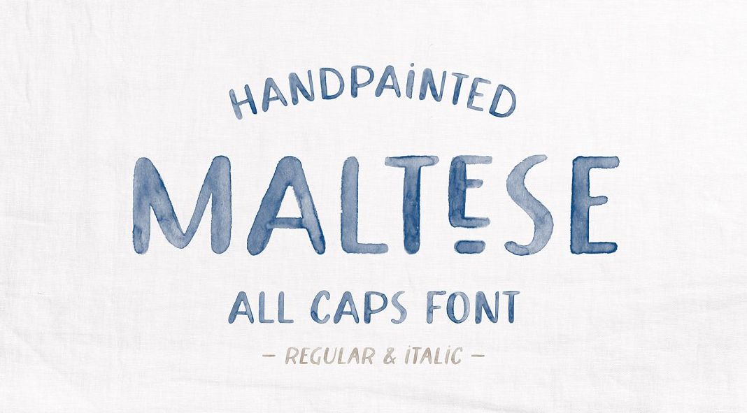 Maltese has been meticulously painted and edited to preserve the original watercolor texture and details. Every character of this font was individually crafted so that both regular and italic versions have a distinct appearance. With Maltese, your work will be infused with a vibrant realistic watercolor vibe as well as an exquisite handmade aesthetic!