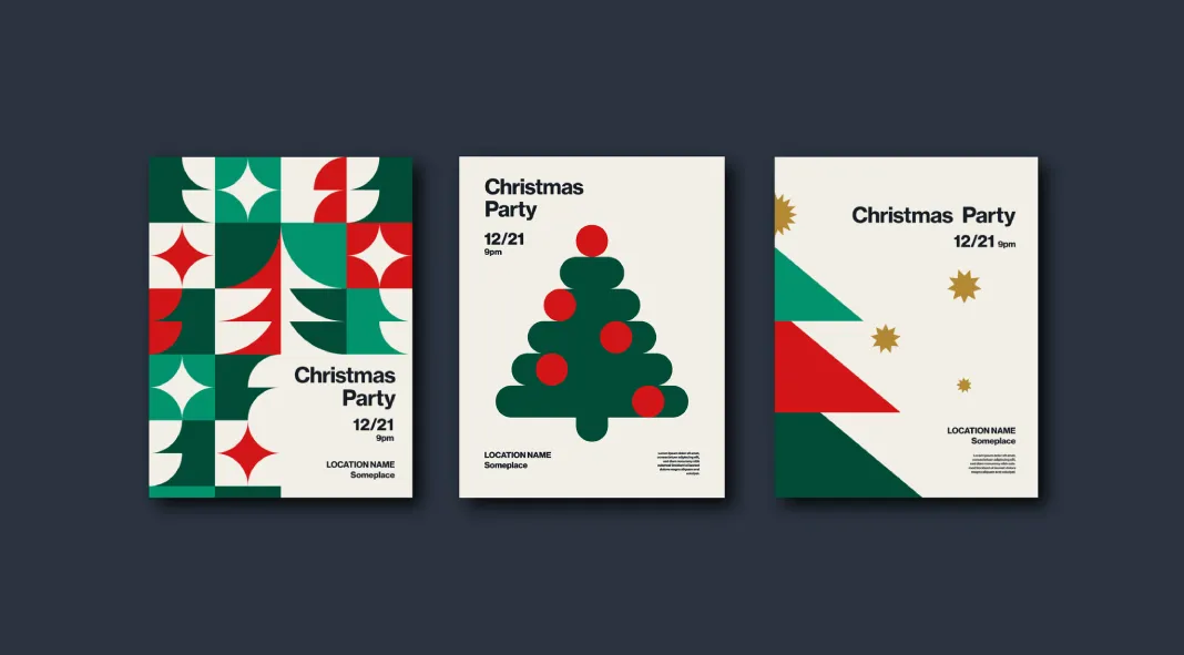 The templates embrace a contemporary aesthetic, characterized by bold geometric shapes and a minimalist color palette. Instead of relying on traditional holiday motifs, Micic crafts designs that resonate with a modern audience, making them versatile for both casual and professional events.