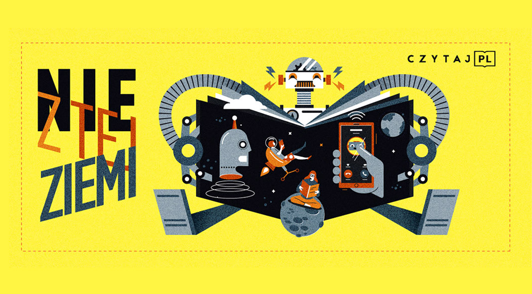 Polish illustrator Adam Q has created these brand illustrations for the “READ” project which focuses on implementing a reading habit among Polish citizens. Each year, the project is represented by a unique literary theme. Version 2021 “OUT OF THIS WORLD” is completely dedicated to SCI-FI books and Stanislaw Lem’s creations.