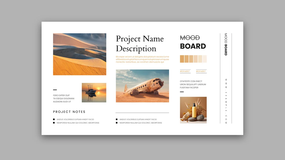 Essentially, anyone who needs to visually communicate a specific look, feel, or direction for a creative project can benefit immensely. It streamlines the visual concept board creation process, adds a layer of professionalism, and ultimately facilitates better communication and project outcomes. Searching for the ‘best moodboard template for client presentations’? This one should definitely be on your list.