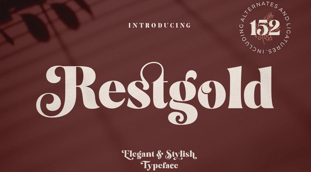 Restgold, a high-contrast serif font made for eye-catching yet elegant typography.