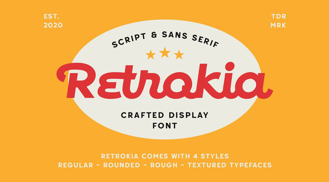 Retrokia, a vintage-inspired display font that offers four stylish retro styles.
