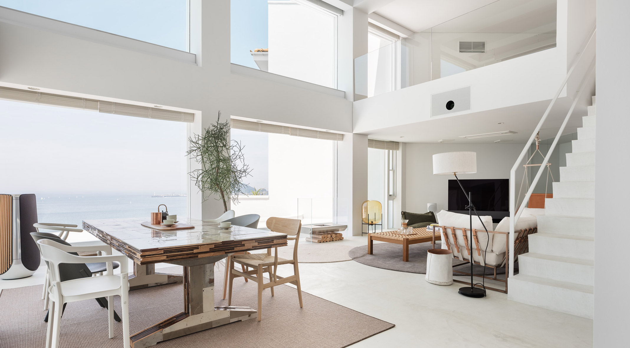 Today we want to show you the sophisticated architecture of the Shichirigahama House. Situated at the shores of Kanagawa, Japan, this modern and minimalist home has been designed by architecture firm SNARK. Thanks to the expansive floor-to-ceiling windows, the house provides much natural light in every room. Despite its minimalistic approach, a well-balanced interior concept ensures a cozy living experience. The windowless façade towards the street offers an even more minimalistic look while giving passers-by no insights. Thanks to a bunch of images, we can get some insights into what lies within. Just have a look below. For more, please visit the website of architecture firm SNARK: snark.cc