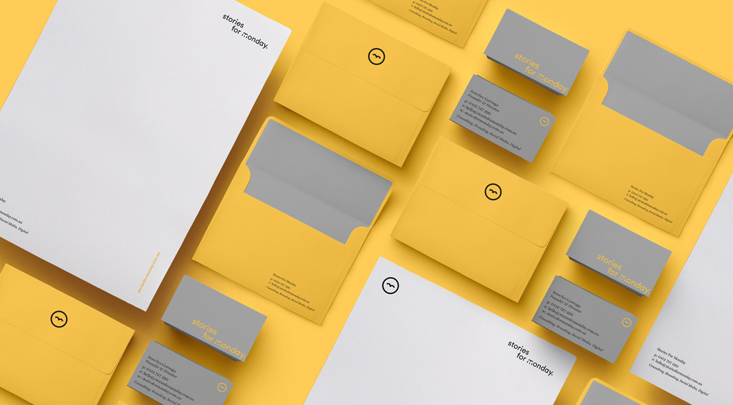 Graphic design, art direction, and brand development by Madelyn Bilsborough for Melbourne-based boutique marketing agency Stories For Monday.