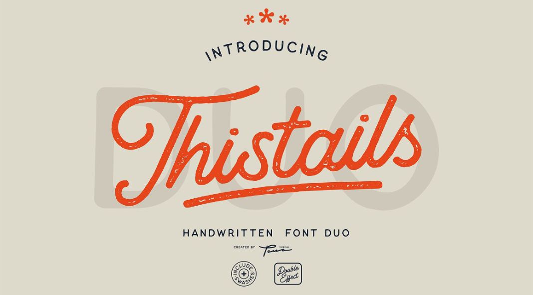 Designed and published by Pana Type & Studio, Thistails is the ideal font duo for any modern-vintage designs, combining a script and sans serif typeface. These fonts are perfect to use in your digital lettering, logo design, t-shirt prints, business cards, or branding materials. They are handcrafted with precision and care so you can create stunning visuals for quotes or nature photography like never before!
