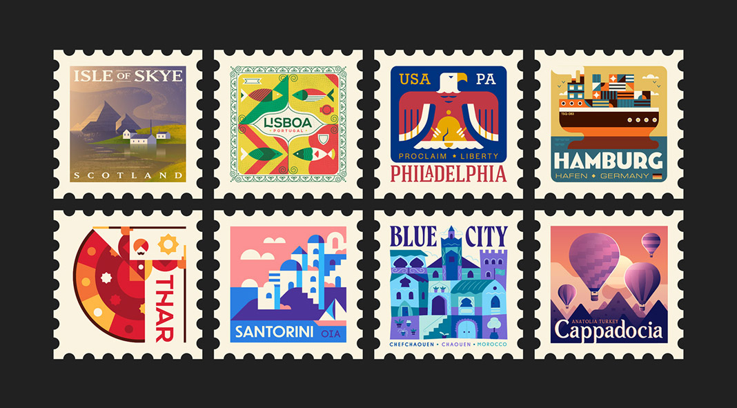 Inspired by their passion for travel and everything vintage, Townsquares is a fun project by the creative people of South African studio Makers Company. Each week, they portray interesting places around the world in the style of a good old postage stamp. The main challenge is to visualize the typical essence of a certain place within the confines of this tiny square. This project is also a great opportunity to experiment with different styles and design techniques.