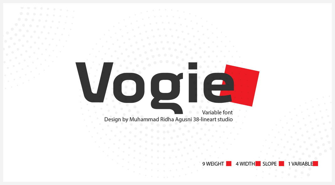 Designed by Muhammad Ridha Agusni of 38-Lineart, Vogie is a voguish new font that is sure to turn heads. With its bold, clean lines, and unique shapes, Vogie is the perfect choice for any project that demands a touch of elegance in the form of a modern sans-serif font. Whether you are looking for an eye-catching typeface for a brand identity, poster design, or social media post, Vogie is the perfect font for the job. So don’t be shy, give Vogie a try today!