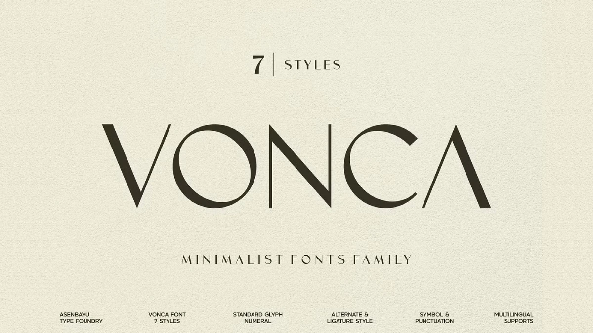 Vonca is a modern font family rooted in minimalism. It uses clean lines and precise geometric shapes to build its letterforms. This approach creates a sleek, highly functional visual aesthetic. The font avoids decorative elements, instead finding its personality in its pristine structure. Consequently, this simplicity provides a powerful canvas for a wide range of creative projects. You can effectively use this font for both contemporary and vintage-inspired designs.