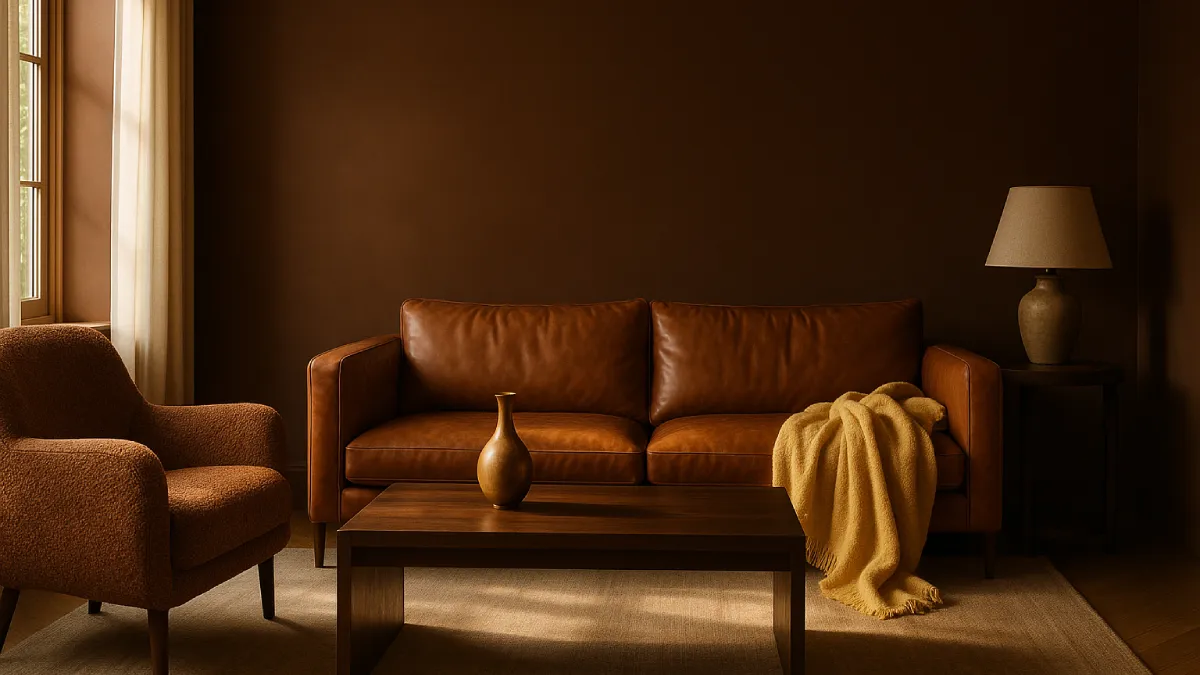 If painting walls feels too permanent, textiles offer an accessible way to introduce brown. Bouclé cushions in a cinnamon shade, a cozy wool throw in dark chocolate, or elegant linen curtains in a soft caramel can instantly add warmth and texture to a room.